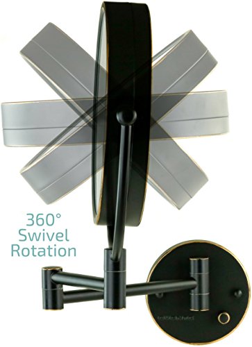 - COMPREHENSIVE – This dual-sided 360° swivel design luxury mirror features 1x7x magnification. 1x for a great view of your entire face all at once, and 7x for precision, because every detail counts (8.5in diameter)