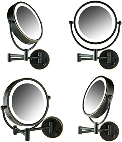 Ovente Wall Mount Makeup Mirror, Direct Hard Wire, 8.5 Inch, 1x/7x Magnification, Hand-Painted Oil-Rubbed Bronze (MPWD3185BZ1x7x)