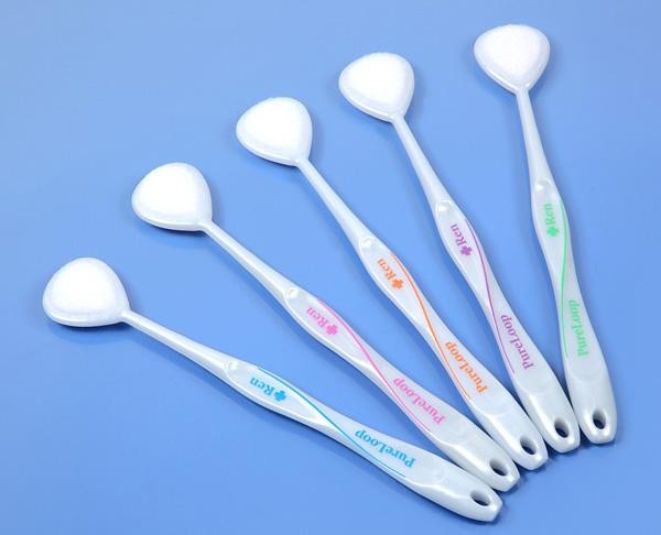 | 舌ブラシピュアループレンは、欧州に比べ舌ブラシに馴染みがない日本人向けに開発されたソフトな使いごこちを追求した新感覚の舌ブラシです。羽毛タイプで汚れを包んで取り除きますのでお年寄りやお子様にも抵抗感なくご使用いただけます。極細繊維をループ状にランダムに編み込んでいる為、舌表面の舌苔はもちろん、乳頭と乳頭の間にある細かい細菌を絡めとります。 |