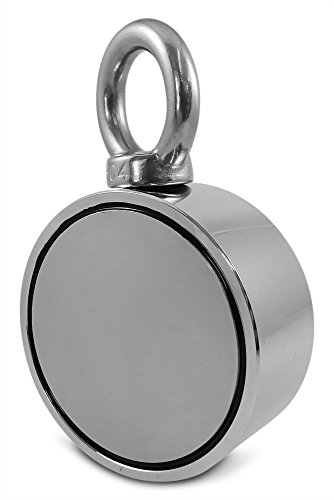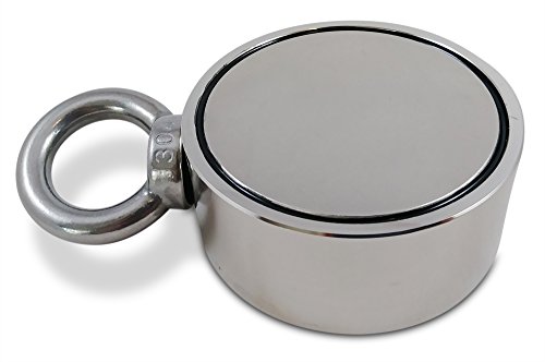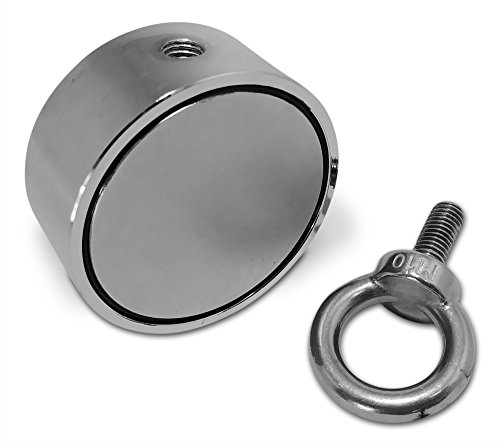 Brute Magnetics Double Sided Round Neodymium Magnet with Eyebolt, Combined 800 LBS Pulling Force, 2.95" Diameter