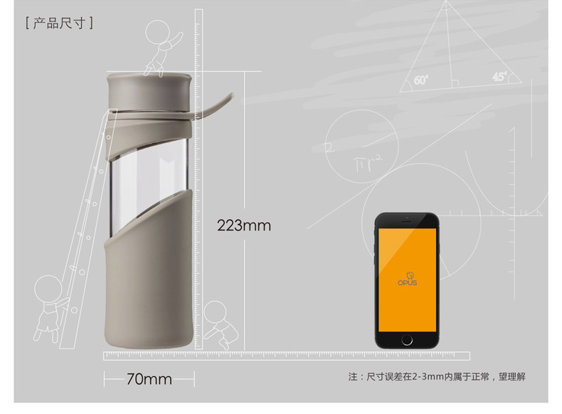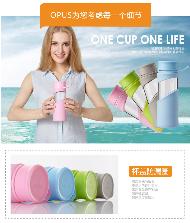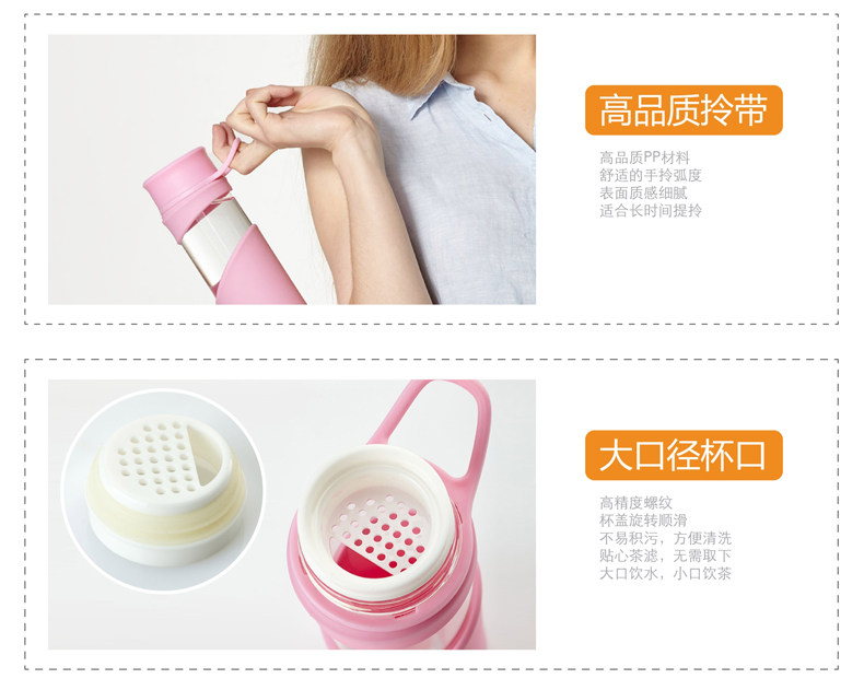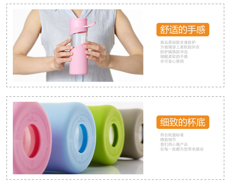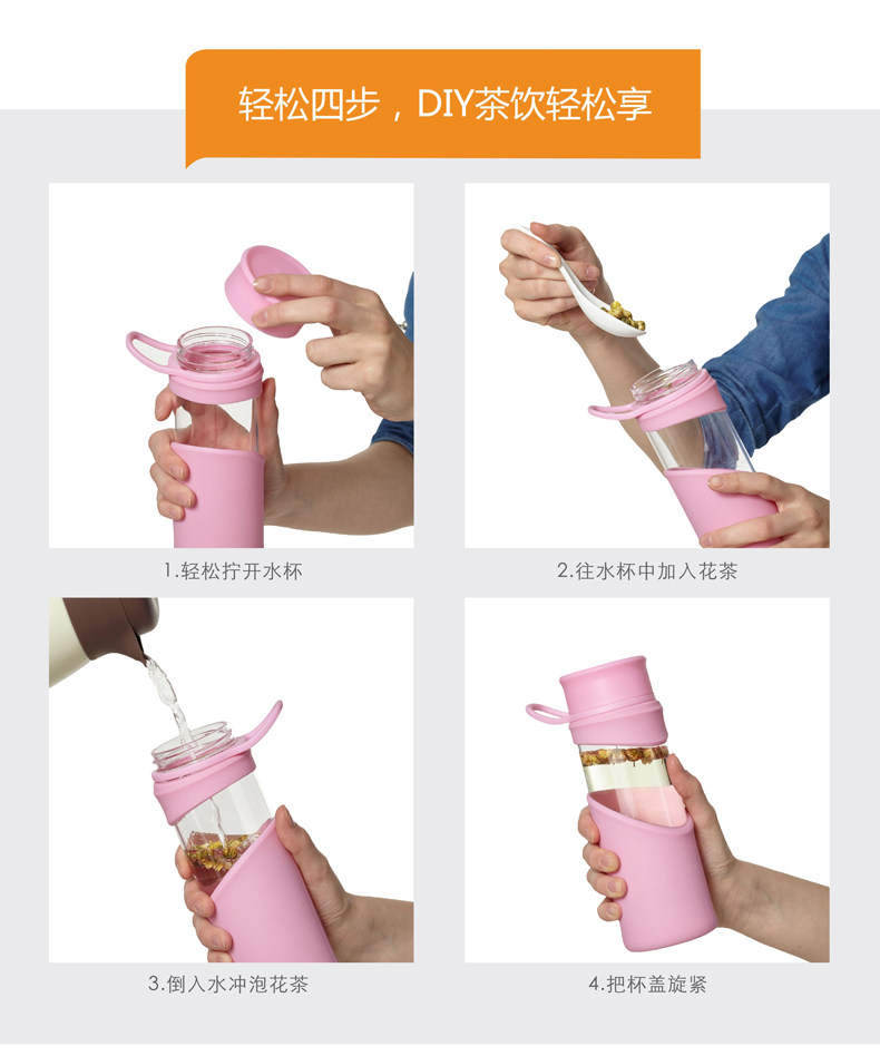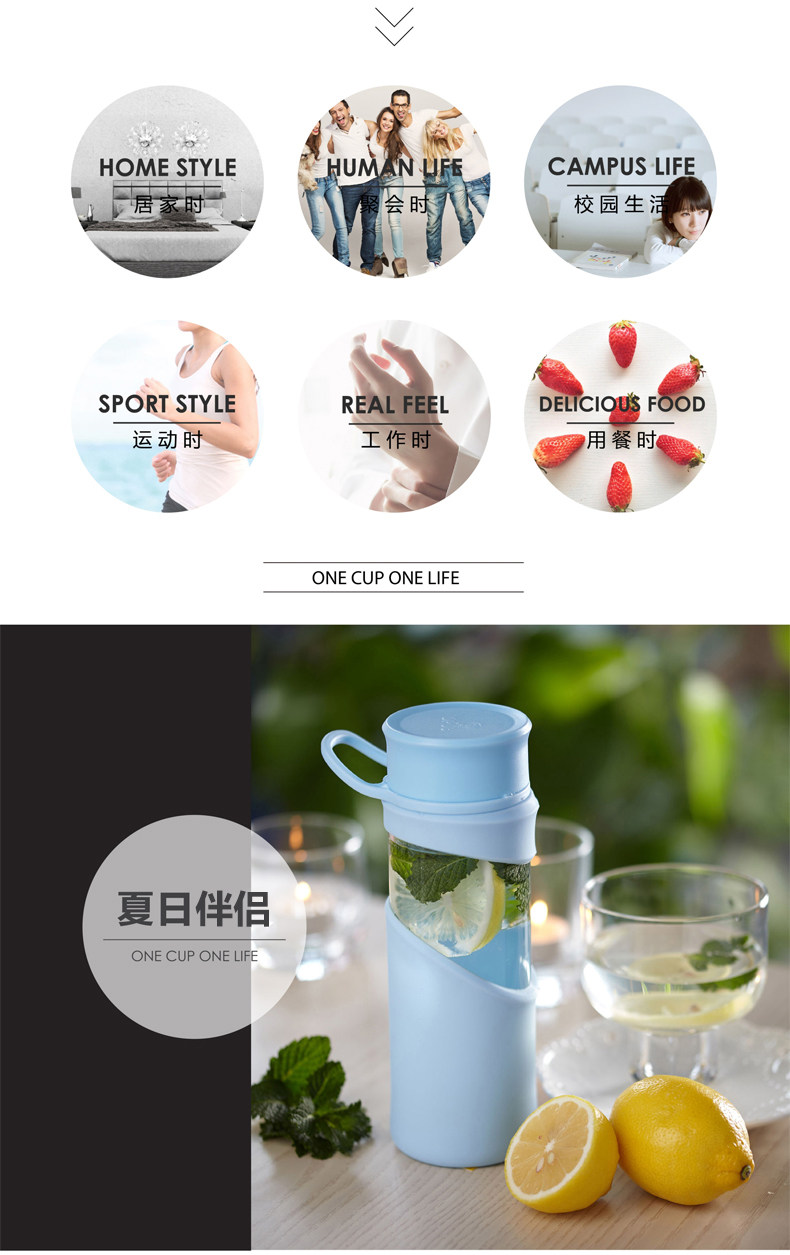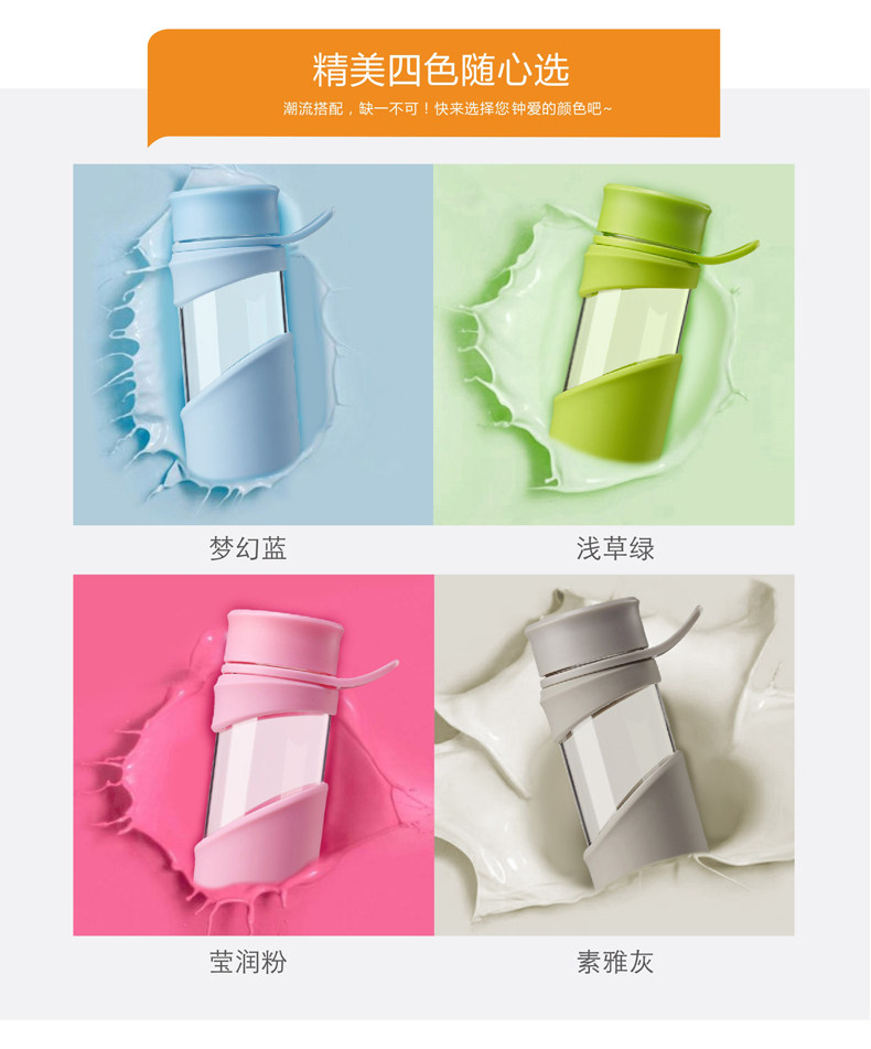 玻璃杯 便携水杯带盖茶杯子 创意透明水瓶男女士加厚运动水杯