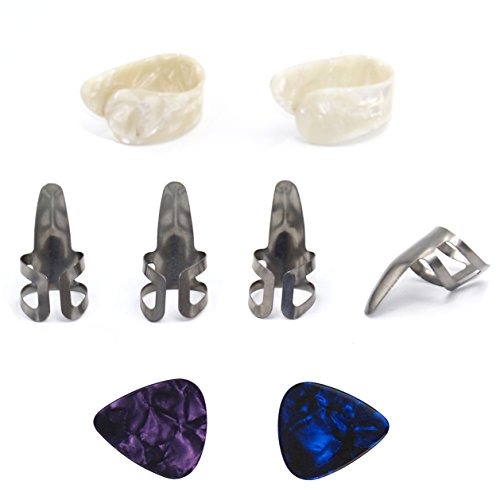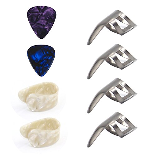 Artempo Guitar Set Accessories Finger & Thumb Pick Set ,Guitar Pick- 4 Stainless Steel Finger Picks& 2 White Plastic Thumb Picks and a Flat-pick 46mm