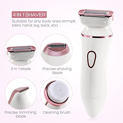Ladies Electric Shaver, ETEREAUTY 4 in 1 Waterproof Women Shaver with Body Hair Bikini Trimmer and Facial Cleasing