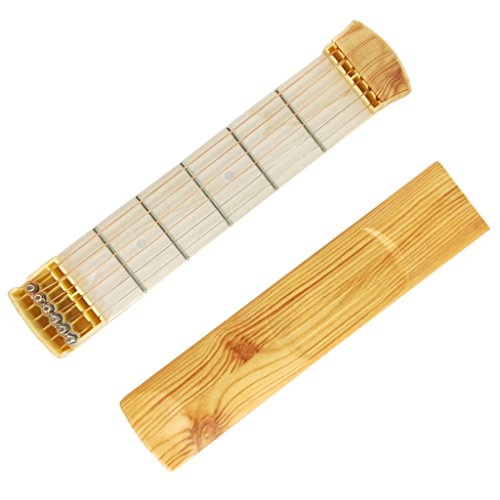 Description: - Guitar Practice Tool Gadget 6 String 6 Fret Pocket Guitar for Beginners - Great tool for training your hands and improving your guitar skills - Ergonomic design, compact size and lightweight, easy to carry and practice - Improving your finger dexterity and speeding up the progress of guitar playing - High quality material, durable in use - Material: Plastic, wood