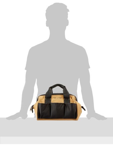 [Product Information]- 23 pocket - 12-Inch tote bag in heavy duty 600D polyester in khaki/black combination