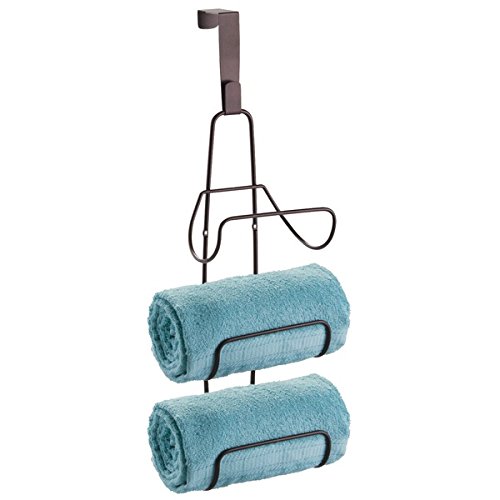 mDesign Over-Door Bath Towel Holder for Bathroom - Bronze