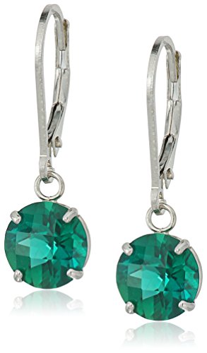 Sterling Silver Round Checkerboard Cut Created Blue Sapphire Lever back Earrings (8mm)