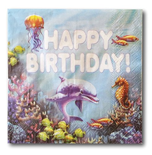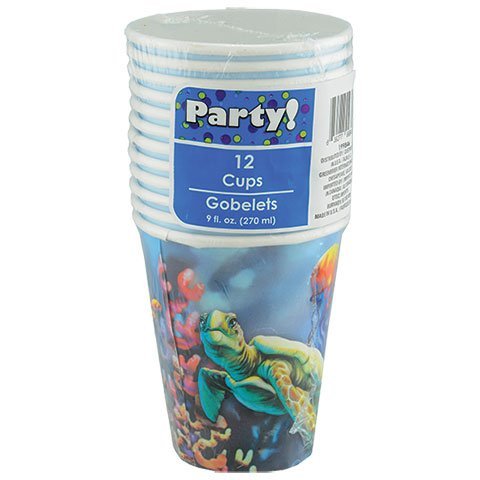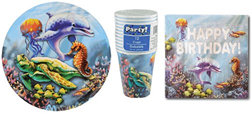 PartyDeiz Bundle Ocean Life Theme (18 Paper Plates, 20 Napkins, 12 Cups) kids Birthday, Poolside, Barbecue or Outing!