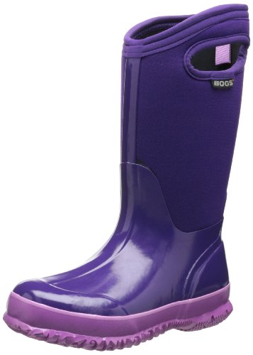 BOGS Classic Solid (Tod/Yth) - Grape 100% Waterproof durable hand-lasted rubber over a four-way stretch inner bootie. Bogs Max-Wick moisture-wicking lining to stay dry and comfortable. Non-marking and self-cleaning outsole. Footbed with DuraFresh bio-technology activates to fight unwanted odors. Constructed with 7mm waterproof Bogs Neo-Tech insulation for comfort rated from temperate to -30F/-34C. Size 7-6. Clean with wet cloth. Made in ChinaFeature