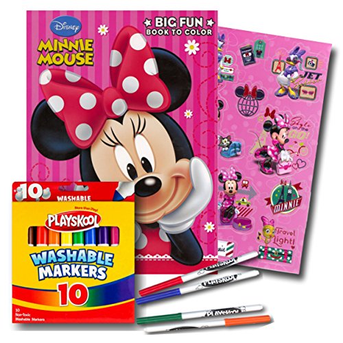 Minnie Mouse coloring book set with Minnie Mouse puffy stickers and 10-pack washable markers.Full-sized 96 page coloring book measures approximately 8" x 10.75". Tons of coloring and activity fun with Minnie! Set includes Minnie Mouse puffy stickers and pack of 8 washable markers by Fisher-Price.Separately licensed reward sticker by Green with Whimsy. Large sticker measures 3 x 3 inches. Sure to be a hit with any Minnie Mouse fan!Feature