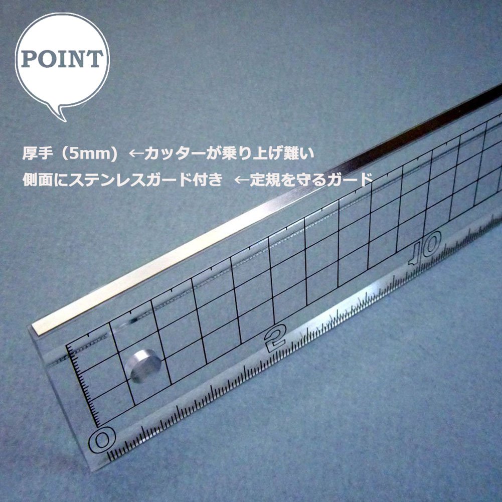 Nuti cutter cutter ruler 30 cm Acrylic has a stainless steel guard with scratch resistance.