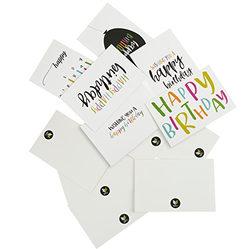 48 Pack Happy Birthday Greeting Cards, 6 Handwritten Modern Style Colorful Designs, Bulk Box Set Variety Assortment, Envelopes Included 4 x 6 Inches
