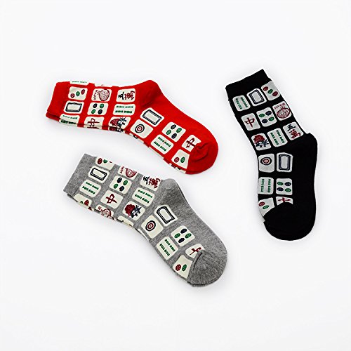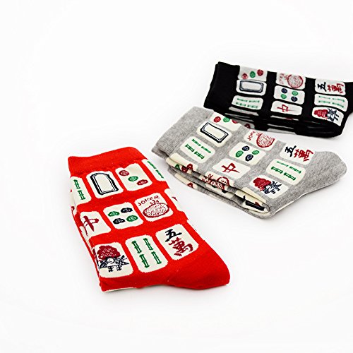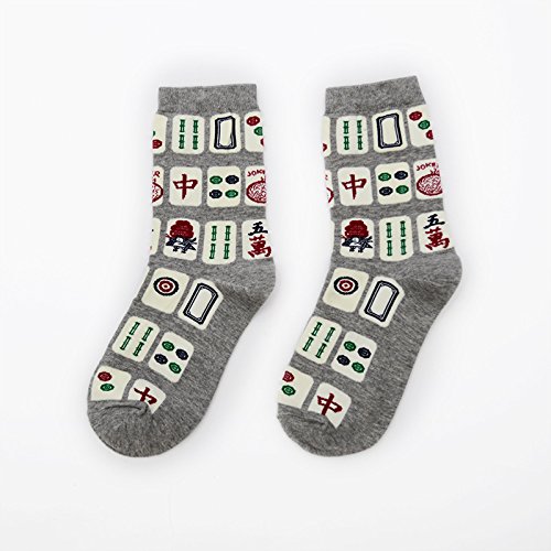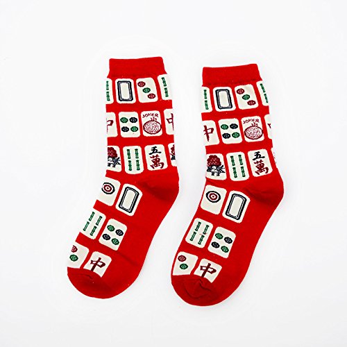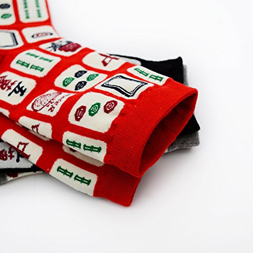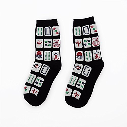 6-Pack Novelty Socks Men Socks Creativity Mahjong Patterns Print Socks Women Cotton Socks Casual Fashion Crew Socks (6)