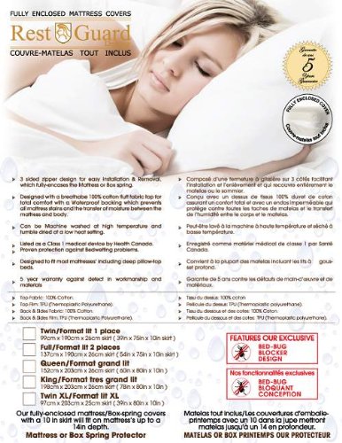 -. Binding : Kitchen -. Brand : Rest-Guard -. Color : Red -. EAN : 0676470141125 -. Feature : 3 Sided zipper design for easy installation and Removal, which fully-encases the Mattress or Box / Designed with 100% cotton fluff fabric top for total comfort with a waterproof polyurethane backing which / Can be Machine washed at high temperature and tumble dried at a low heat setting. / Listed as a Class 1 medical device by Health Canada. / Proven protection against Bedwetting problems. -. Label : Austin-Taperly -. Manufacturer : Austin-Taperly -. MPN : H14112 -. PackageQuantity : 1 -. PartNumber : H14112 -. ProductGroup : Home -. ProductTypeName : HOME -. Publisher : Austin-Taperly -. Size : Twin -. Studio : Austin-Taperly -. Title : Austin-Taperly H14112 Rest-guard Bed Bug Waterproof Mattress Cover - 12 in. Twin -. UPC : 676470141125