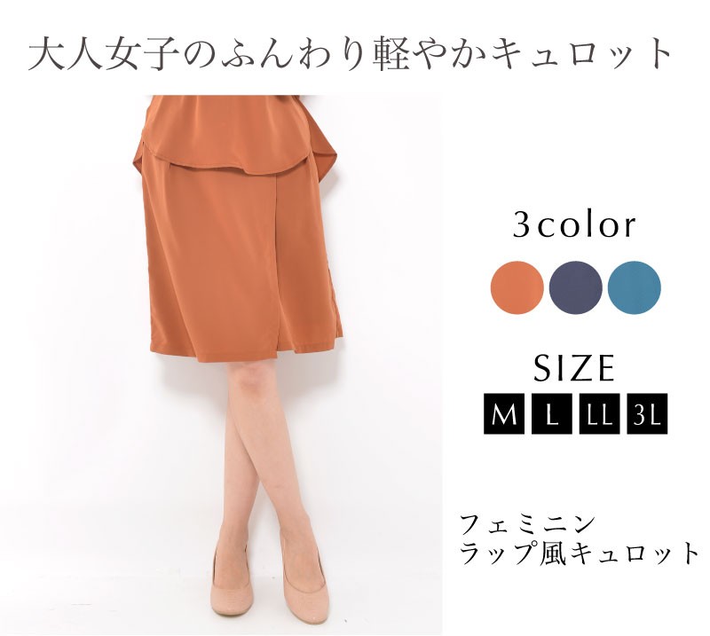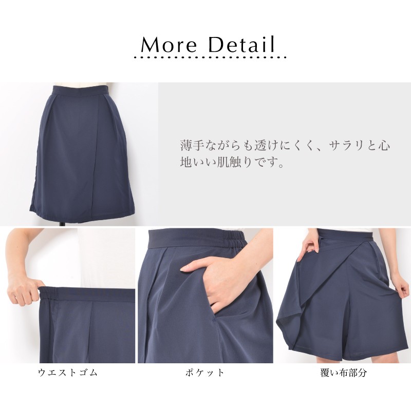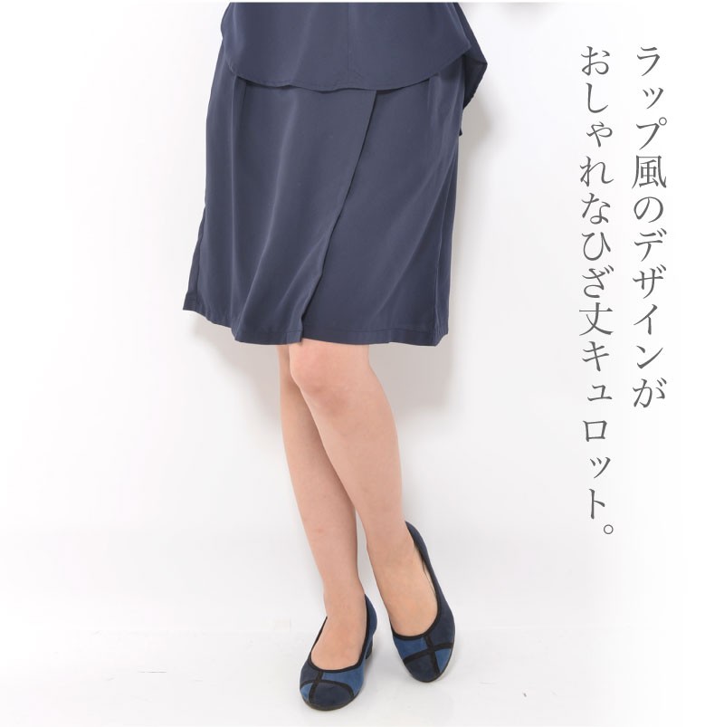 ラップ風のデザインがおしゃれなひざ丈キュロット。