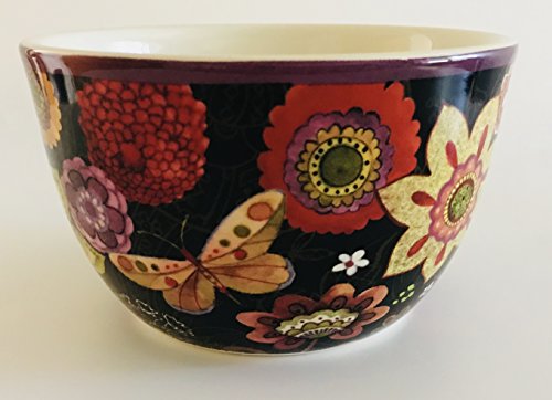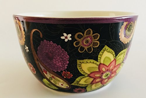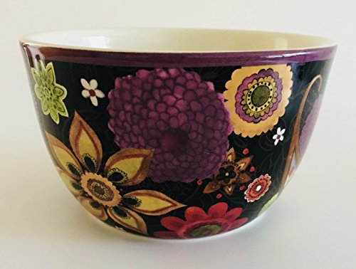 Vibrant Flowers on a Black Background Set of 2 Soup | Dessert Bowls | Designed by Sue Zipkin for Certified International | 5.25 inches x 3.25 inches