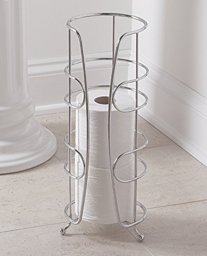 mDesign Free Standing Toilet Paper Holder for Bathroom Storage - Chrome