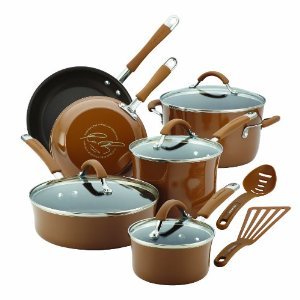 -. Feature : Rachael Ray Cucina Cookware features rustic modern color functionality and design to enhance mealtime warmth and hospitality / Crafted with durable aluminum and sturdy hard enamel porcelain exteriors; espresso-colored PFOA-free nonstick releases foods effortlessly / The 12-piece cookware set boasts dual-riveted rubberized stainless steel handles and shatter-resistant glass lids; includes slotted turner and spoon / Oven safe to 400 degrees Fahrenheit the pots and pans are suitable for all stovetops except induction / Lifetime Limited Warranty for cookware that is a welcome addition to serveware dinnerware and other pieces in the Rachael Ray Cucina collection