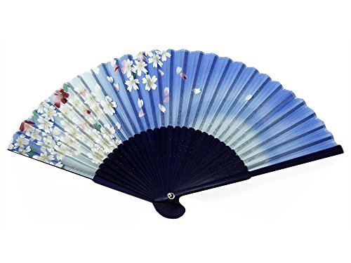Japanese Handheld Folding Fan, White and Plum Flowers HF-234