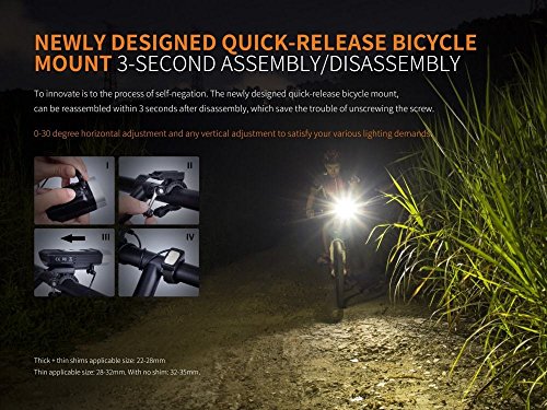 Studio : Fenix Publisher : Fenix Product Description The ISPO (Asia) Award Gold Winner gets upgraded! The BC30R 2017 is a Micro USB rechargeable bicycle light features digital display screen for confidence-inspiring readings. It is fitted with two Cree XM-L2 T6 neutral white LED's, and emits a max output of 1800 lumens with featured dual distance beam system. OLED display panel, which displays the remaining runtime at the current output level, and the battery percentage clearly, as riders need not only comfortable lighting, but also need to know the remaining runtime, whether during mountain biking or urban riding. A compact body with built-in rechargeable batteries, upgraded quick-release fitment, newly designed remote pressure switch and full-metal housing for better dissipation allow this versatile light to illuminate your trails confidently.