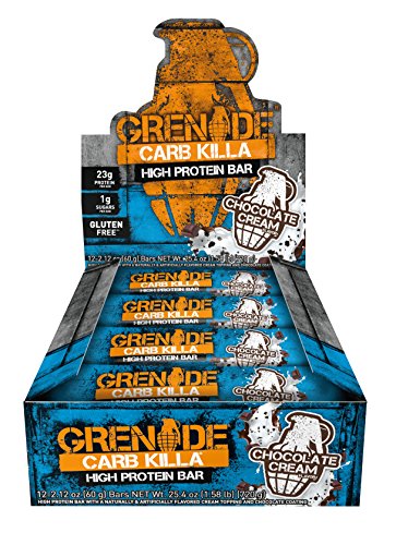 ReleaseDate : 2016-03-17 Studio : Grenade USA, LLC Publisher : Grenade USA, LLC Binding : Health and Beauty Product Description Carb killa-low carb bar with over 23 g protein, less than 1.5 g of impact carbs and less than 1.5 g of sugars per 60 g bar. A thick caramel layer over a soft, chewy base filled with crunchy crispies, all coated in milk chocolate makes carb killa a delicious, protein packed snack without loading up on unwanted carbs. This informed sport product has undergone stringent testing to ensure it is safe for use by military personnel and professional athletes. 0