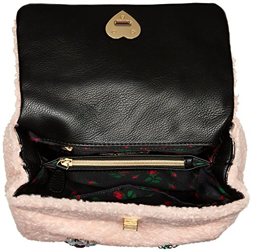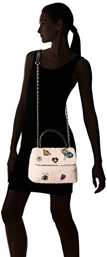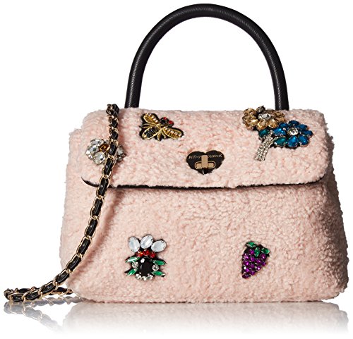 Product DescriptionBetsey Johnson crossbody boucle bag with detachable strap, applique detailing, and top handle0