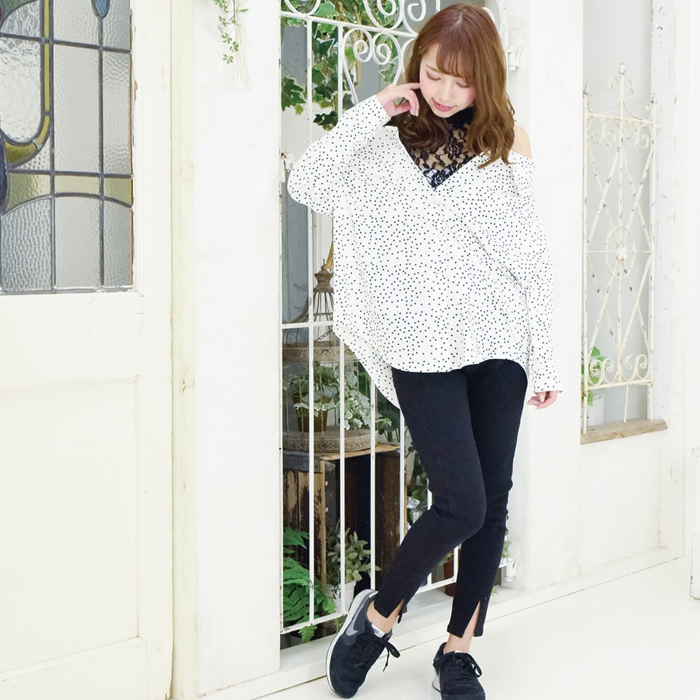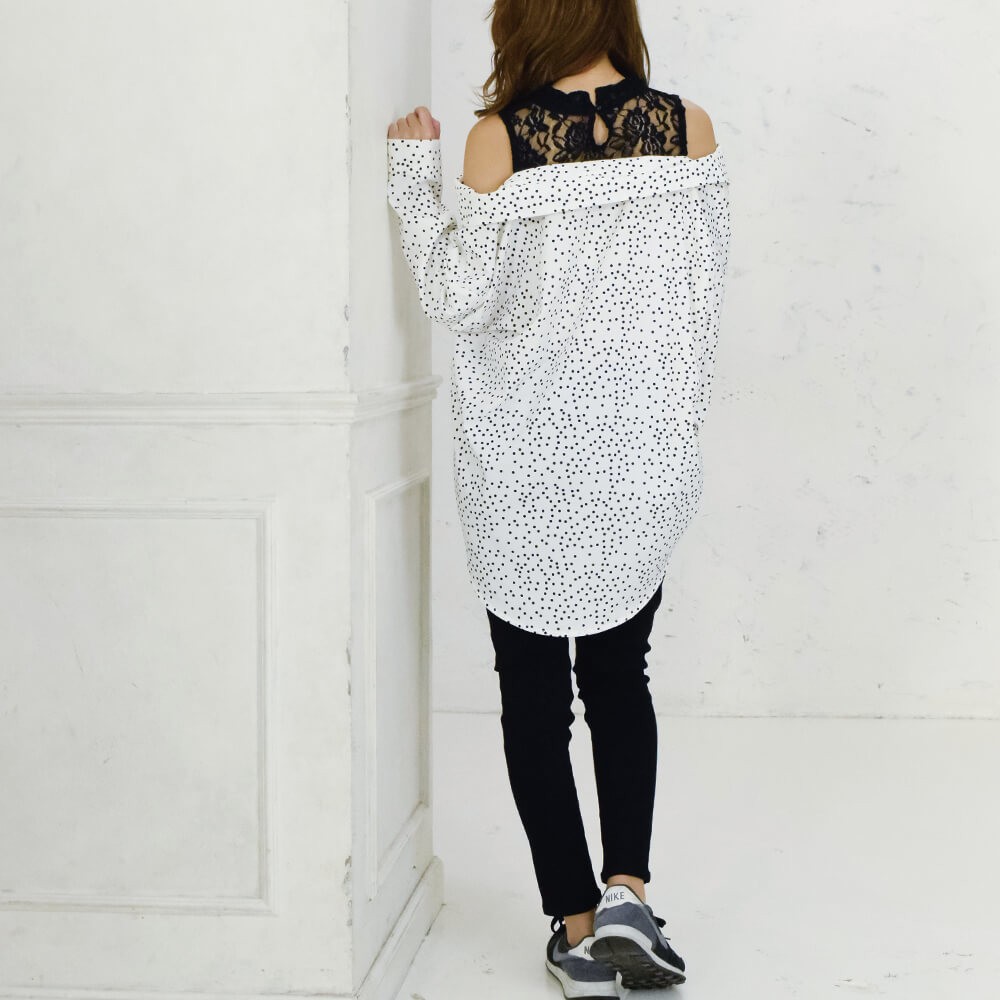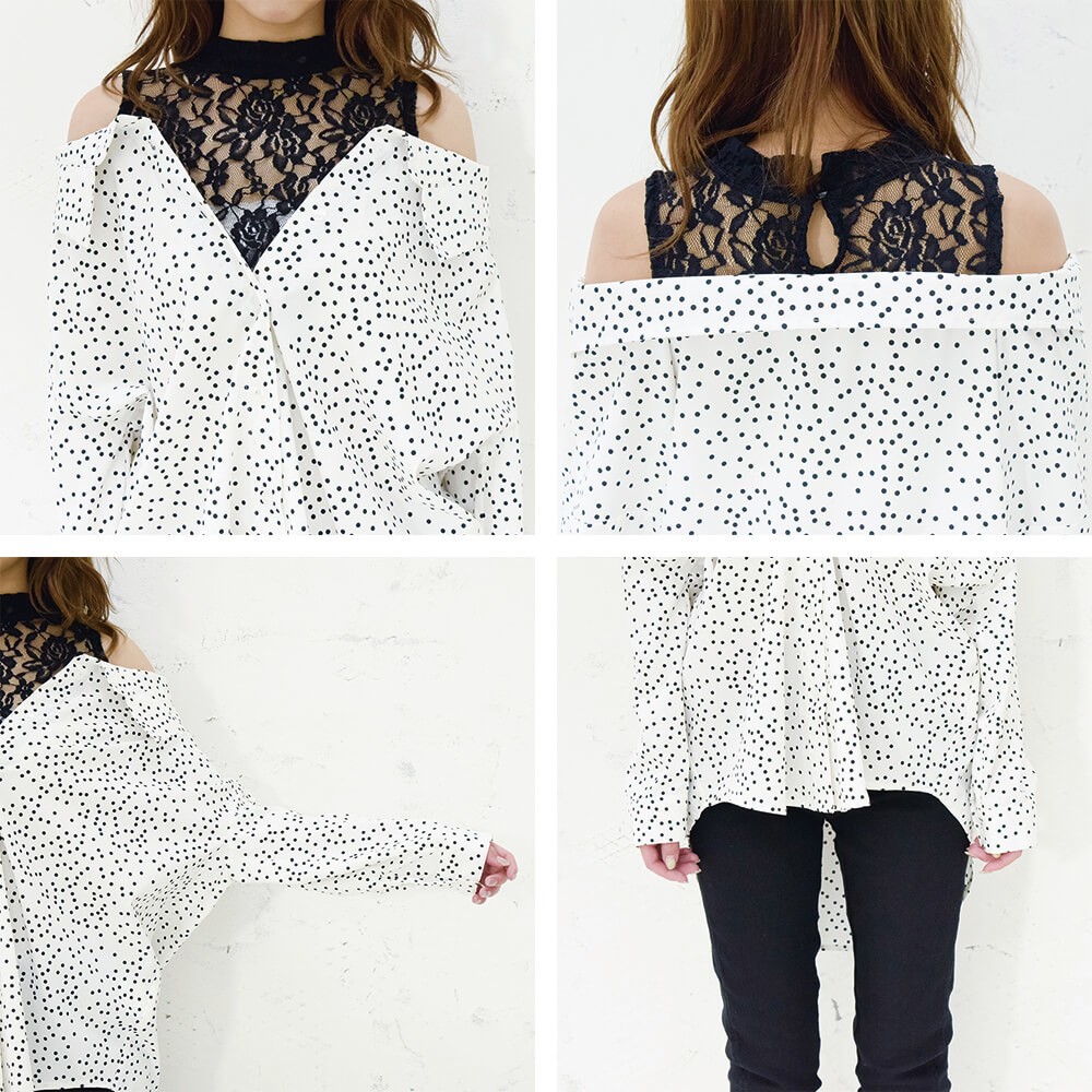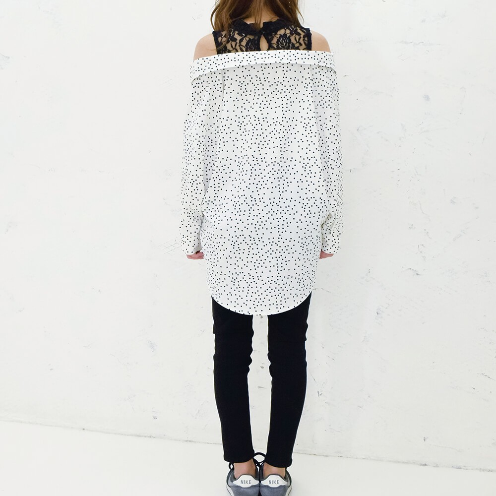 レース切り替えドロップショルダーシャツ