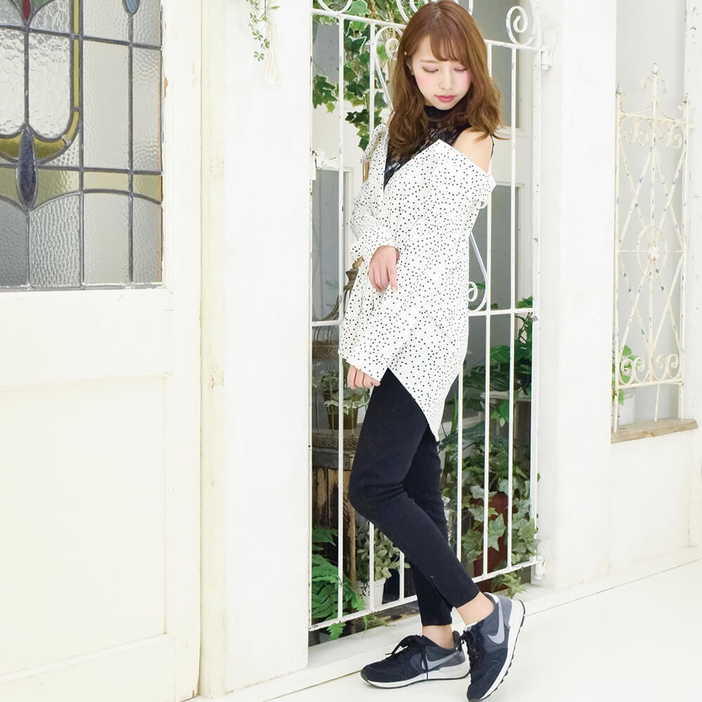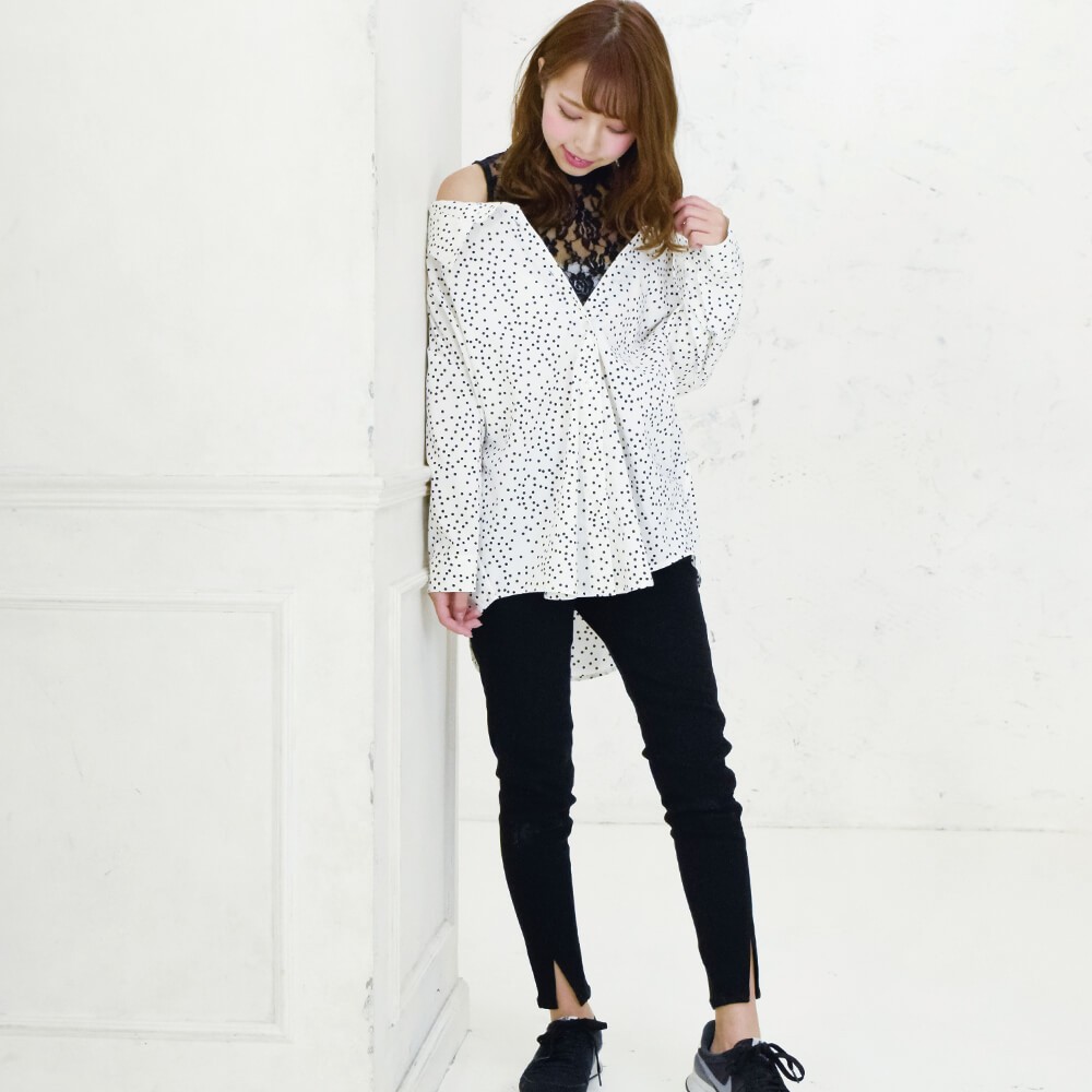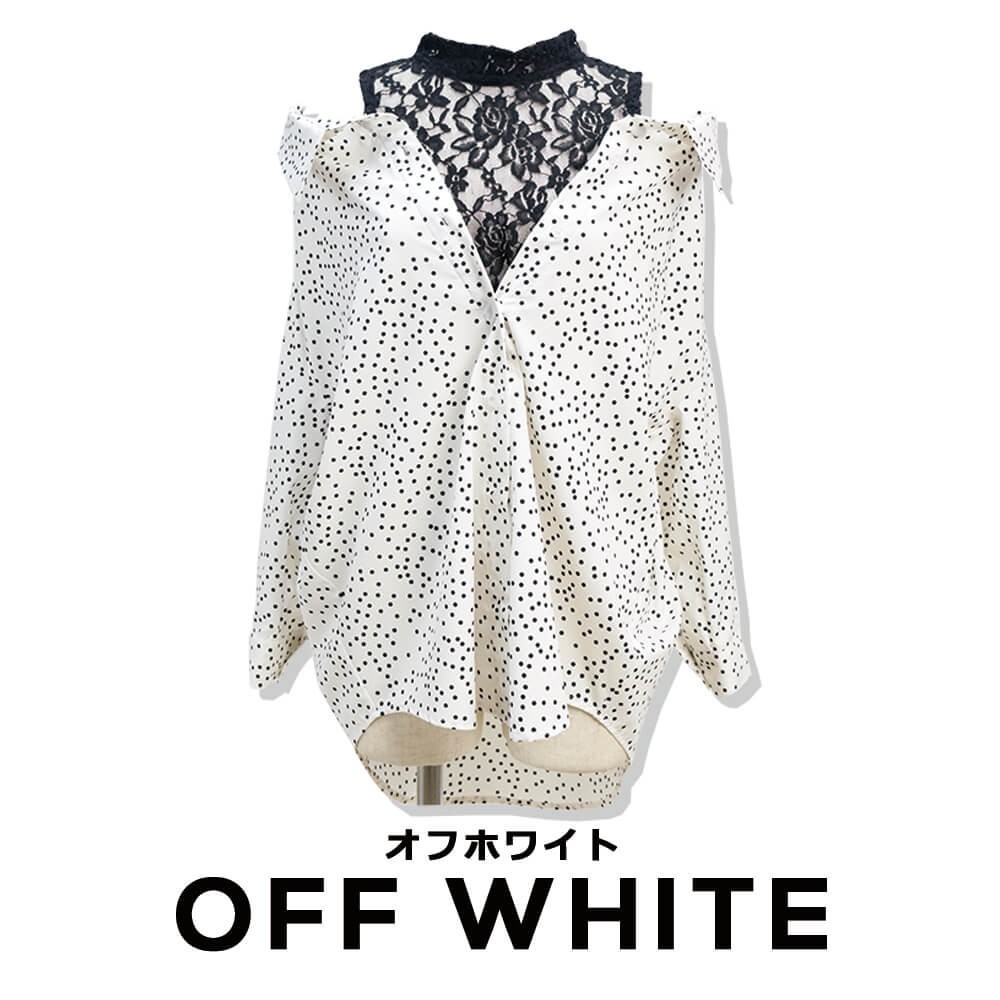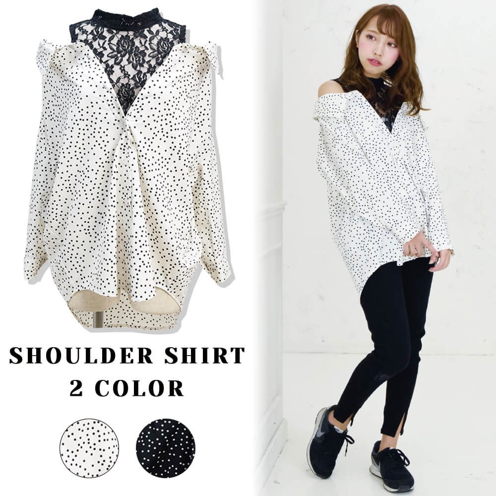 レース切り替えドロップショルダーシャツ