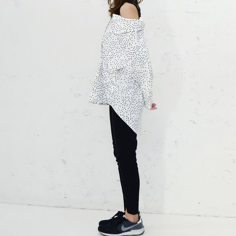 しなやかにオチ感のある素材を活かし、ドロップショルダーのシルエットが美しくキマるシャツブラウスです。