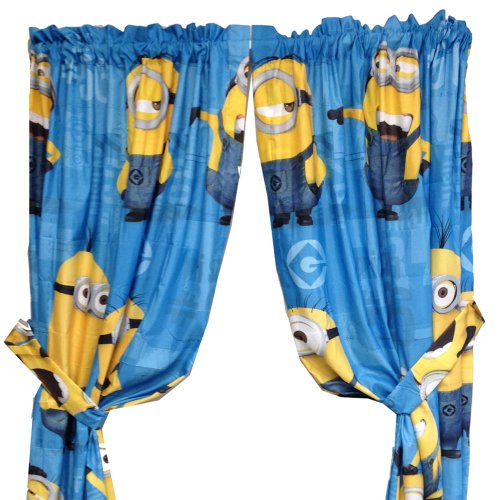 Set: 2 window panels and 2 tiebacks Panel dimensions: 41" W x 63 Material: 100% polyester Microfiber construction Care: Machine wash Brand : Disney,Disney Baby,Despicable Me Minions