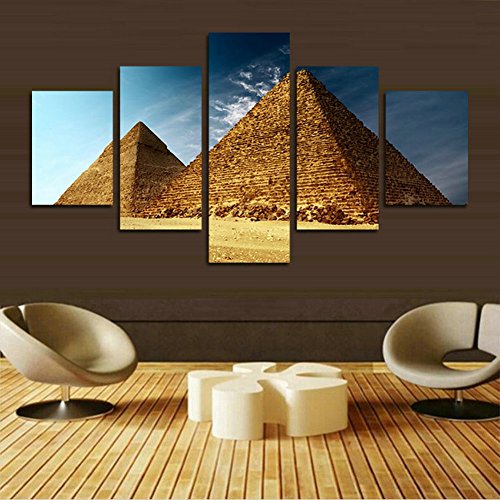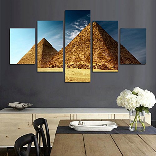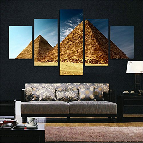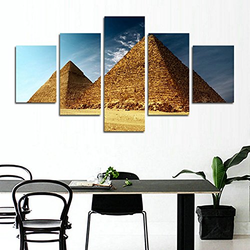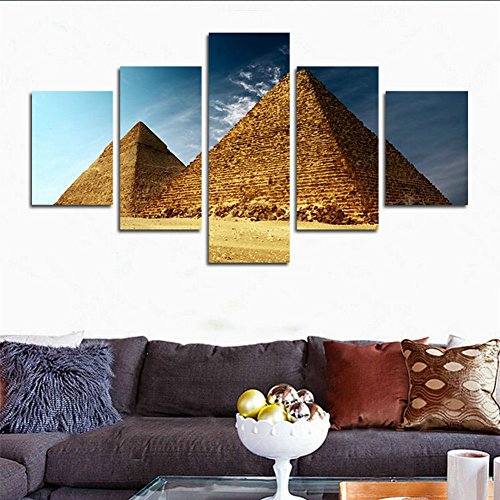 -. Title : H.COZY 5 Piece Home Decor Oil Painting Egyptian Pyramids HD P.R.Int on Canvas Wall Art Picture for Living Room(No Frame) Unframed far192 50 inch x30 inch