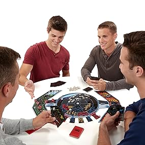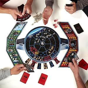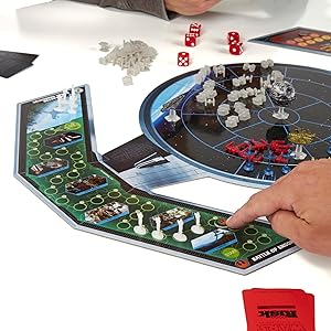 The Risk: Star Wars Edition game lets players recreate the dramatic final moments of Star Wars: Return of the Jedi. Across a TIE fighter-shaped gameboard, players can determine the fate of the Star Wars universe through 3 concurrent, yet distinct, battles. The 3 battles going on simultaneously are: the attack on the Death Star, the shield assault, and the battle between Luke Skywalker and Darth Vader. Opponents choose to play as the light side or the dark side of the Star Wars saga, and use the classic Risk dice to control characters and ships. No matter which side is victorious, the game is sure to be filled with action and adventure!