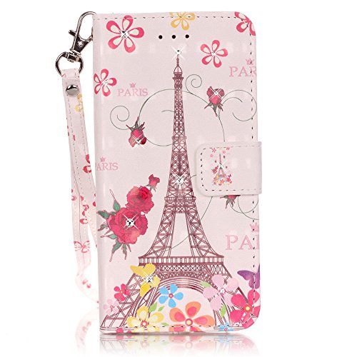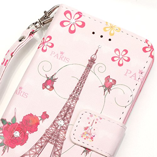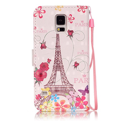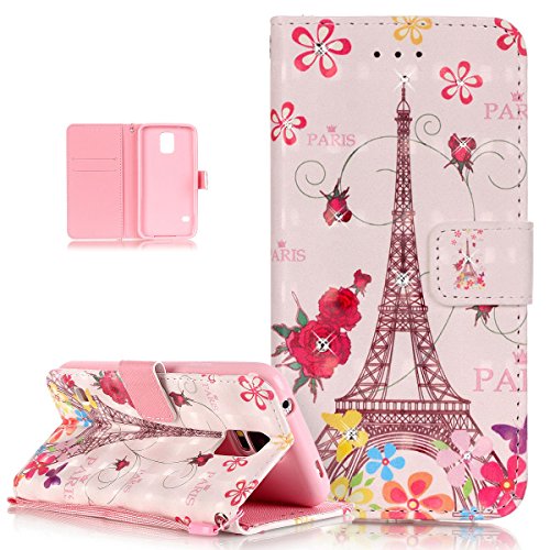 Galaxy S5 Case,Galaxy S5 Neo Case,ikasus Shiny Glitter Diamond Colorful Painted PU Leather Flip Wallet Pouch Stand Credit Card ID Holder Case Cover for Galaxy S5 / S5 Neo,Butterfly Flower Eiffel Tower