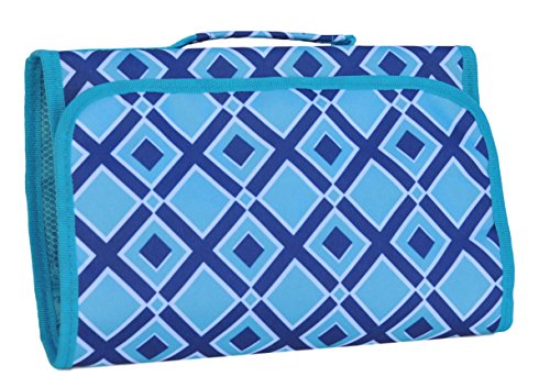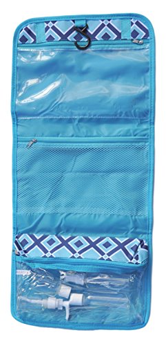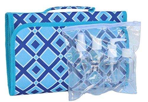 Keep your toiletries organized with this blue and pink stylish quatrefoil design bag - 4 bottles INCLUDED