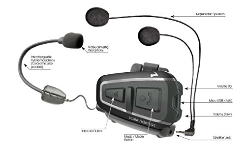 Studio : Cardo Systems Inc Publisher : Cardo Systems Inc Product Description Bike-to-Bike intercom range of up to 1 mile, One 8" Intercom - toggle between 9 riders, 4-Way full duplex intercom conference mode, Voice Recognition and Voice Command technology for true hands-free operation, Flash Pairing - simply 'bump' two G9s together and you're ready to hit the road!, Click-to-Link for spontaneous intercom with Scala Riders nearby with no need for pre-pairing, Music Sharing: Rider and Passenger can listen to the same stereo music (via A2DP), Android App for individual Scala Rider customization (first of its kind!), Cardo Community online social platform allows you to invite friends on a ride, personalize your unit's settings and access software updates, Group Signal: Send an audio alert to up to 8 other riders in your group simultaneously, Hot-Dial number (customizable)Multiple Connectivity options: Dual Handsfree profile to connect 2 Bluetooth-enabled mobile phones, Mobile Phone Conference Mode (rider, passenger, outside caller), Stereo Bluetooth (A2DP) enabled MP3 player / iPod or smartphone to stream wireless music, Non-Bluetooth audio player (via MP3 cord), Receive in-the-ear navigation instructions from Bluetooth enabled GPS (must support HS profile) 0