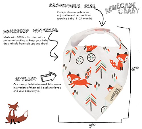 -. Binding : Apparel -. Brand : Baby Renegade -. Department : unisex-baby -. Feature : SUPER ABSORBENT - No more wet clothes while eating or teething! Front is 100% soft organic cotton / Back is polyester fleece for absorbency. Protect & keep your teething baby dry from all dribble and spit ups. No more wet clothes! / SOFT AND DURABLE - Machine washable 100% Organic Cotton on the front and super soft polyester fleece on the back to keep your baby comfortable! / ADJUSTABLE SNAPS - No velcro! These bibs come with a sets of 2 secure snaps to ensure these bibs will fit your baby as they grow (recommended 3 - 24 months) and stay in place while eating or teething. / EXCELLENT GIFTS - Make sure to add these to your baby registry! Our trendy unisex bibs look great on both boys and girls. The neutral patterns help blend into many styles and looks. No baby registry is complete without! / SYLISH - Don't just cover your baby, accessorize to keep clean! -. PackageQuantity : 1 -. ProductGroup : Apparel -. ProductTypeName : ACCESSORY -. Size : Medium -. Title : Baby Bandana Teething Bibs Variety 4 - Pack (Baby Renegade)