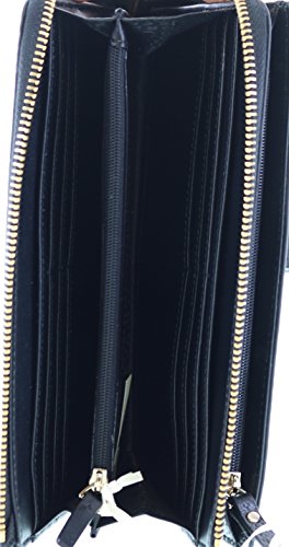 Gusseted interior features 12 card slots, 2 slip pockets, and 1 central zip pocket