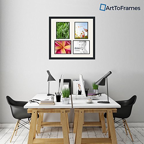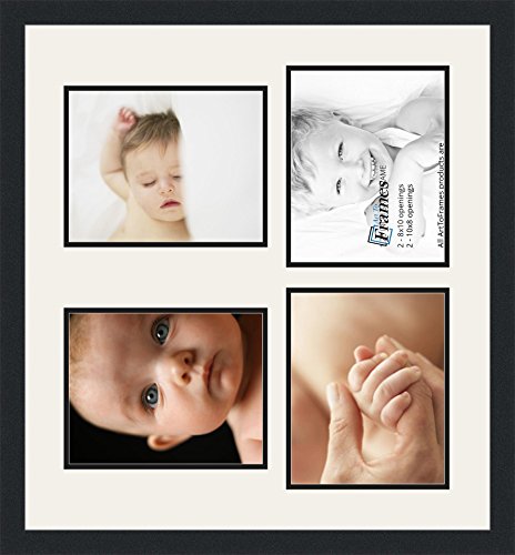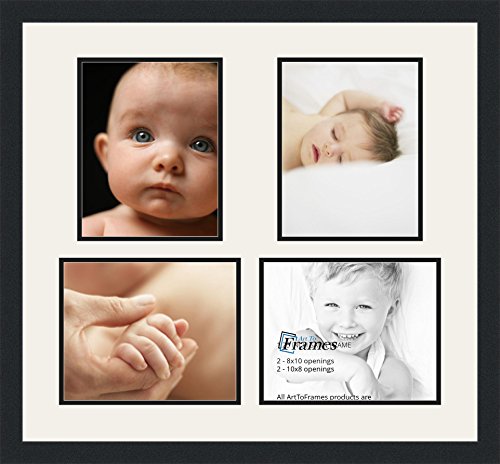 ArtToFrames Double-Multimat-129-61/89-FRBW26079 Collage Photo Frame Double Mat with 4-8x10 Openings and Satin Black Frame, Super White, 4-8x10