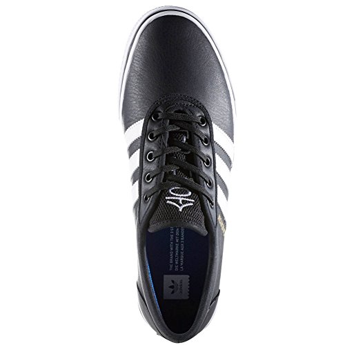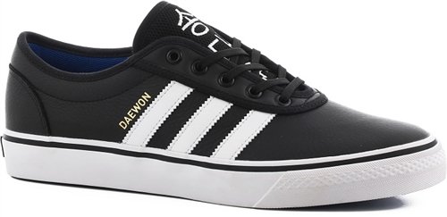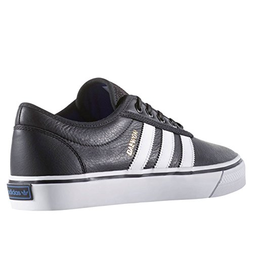 -. Binding : Apparel -. Brand : -. Color : Black / White / Gold -. Department : mens -. Feature : Rubber sole / Soft suede upper for a plush look; Synthetic 3-Stripes / Soft textile lining for comfort / EVA sockliner for cushioning and support / Grippy vulcanized outsole for precise board feel -. Model : CG4905 -. ProductGroup : Shoes -. ProductTypeName : SHOES -. Title : Adi-Ease Black / White / Gold Skate Shoes