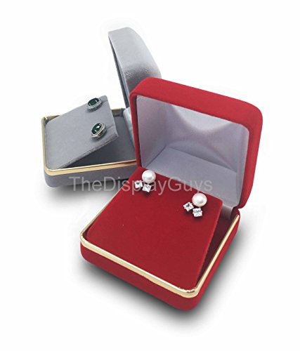 The Display Guys~ Deluxe Red VELVET Pendant & Earring Gift Box, Jewelry Presentation Display Case with Gold Trim Metal Hinge (2 5/8x2 5/8x1 3/8 inch)
