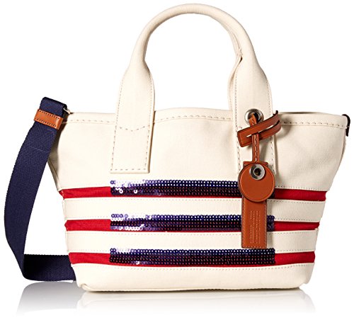 The st tropez small tote is a lightweight cotton canvas tote with detachable logo tag featuring blind embossed logo. The inside of the tote features in interior zip pocket for easy and secure storage. Features sequin detail on front of tote.Feature