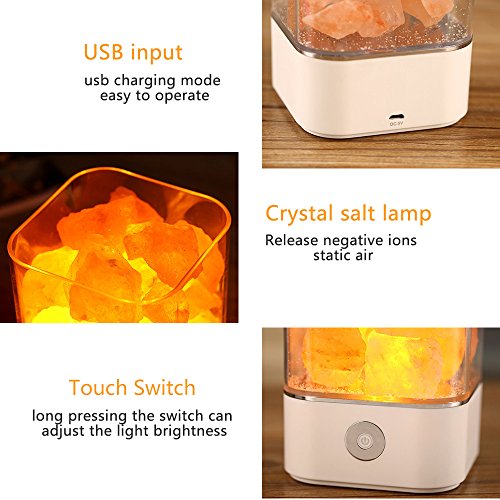 Himalayan Salt Lamp Natural Square Orange Pink Salt Rock Lamps USB Himilian Sea Salt Crystal Night Light with Touch Dimmer Switch Gift for Family and Friends Relieve Stress Purify the Air by LEDMEI