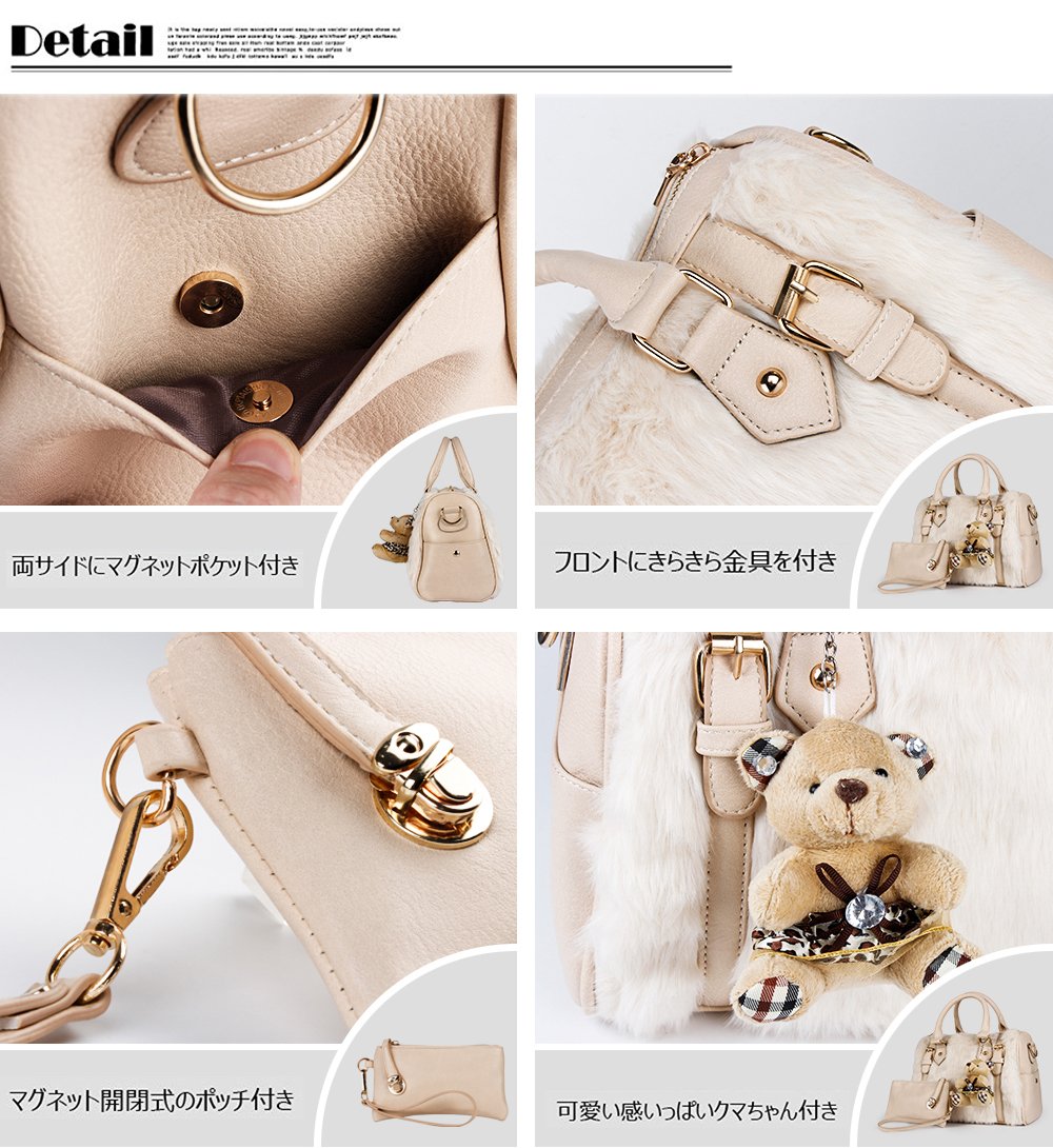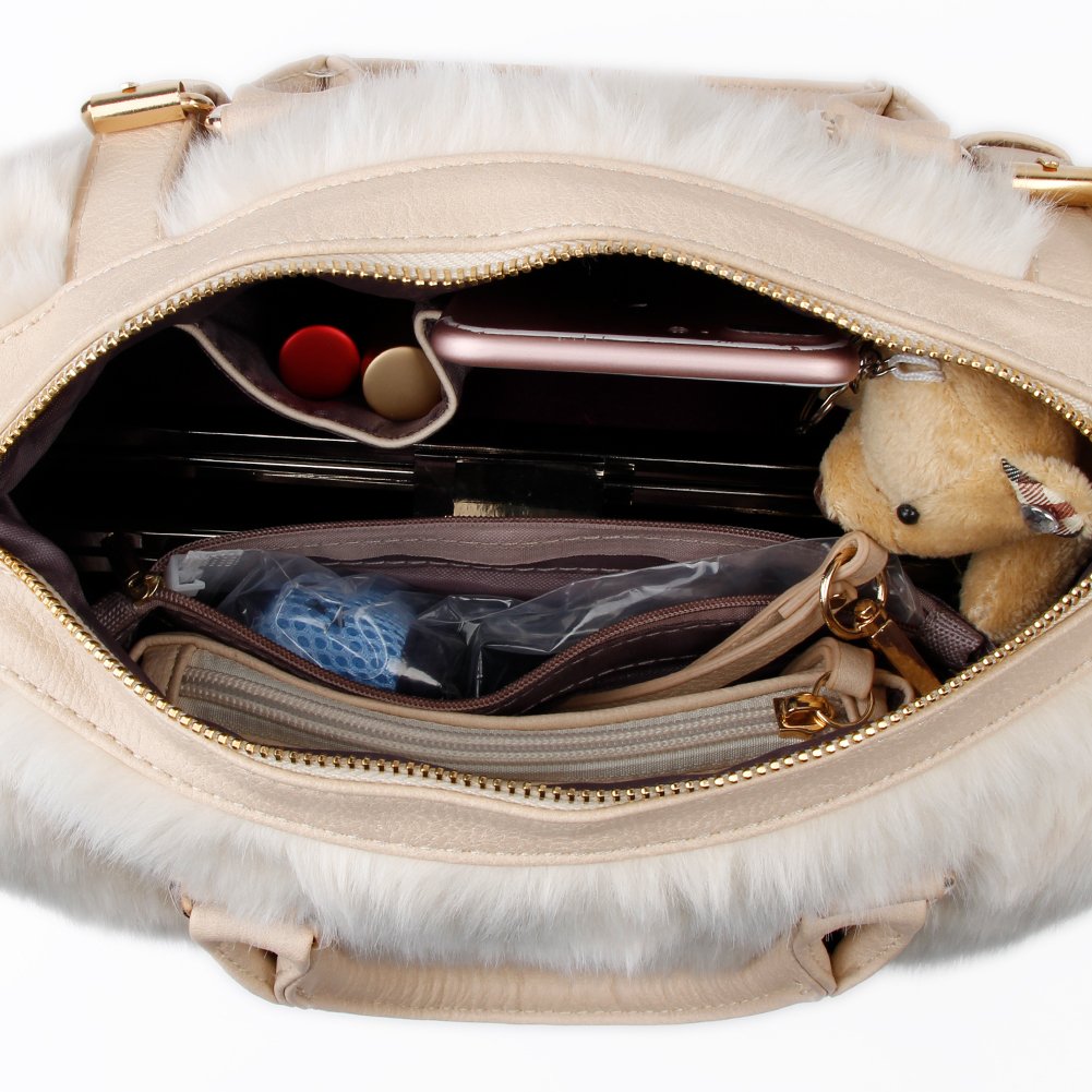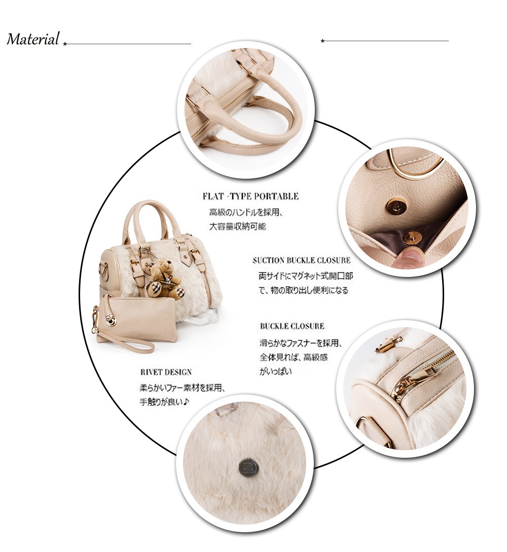The main fabric of the bag adopts leather material, soft fluffy fur on the outside is a long, plenty volume, wrapped in hand.