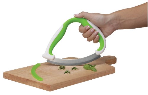 The World's Greatest Rockin’ Good Herb and Vegetable Mincer, Chopper, Slicer and Mezzaluna with Stainless Steel Blades and Comfort Handle