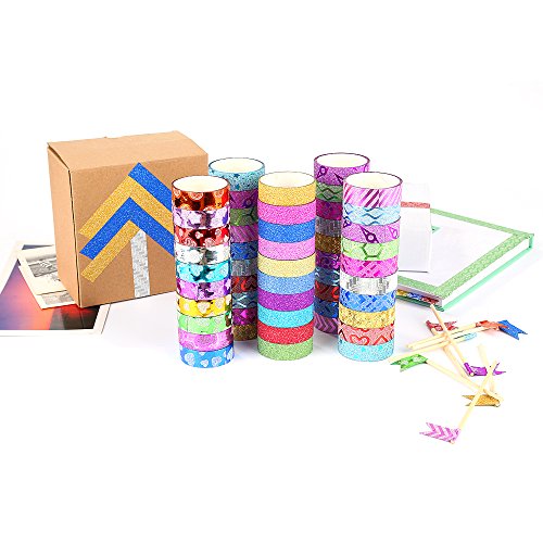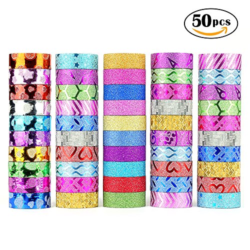 Glitter Washi Tape,50 rolls Decorative Tape for Arts and Crafts, Scrapbook,DIY,Gift Wrapping,Party Supplies, Multi-purpose with Colorful Designs and Patterns by WEfun