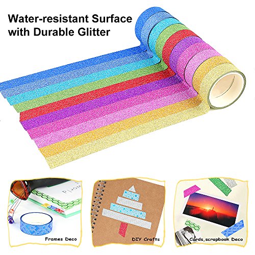 - SHINING PROJECT-You can use this glitter Washi Tape Set to create a shining project,such as DIY Scrapbook,decorate picture frame,make mini flags for cupcakes,gift wrapping, create paper paintings, party supplies,incorporate into albums, or include just about anywhere for a brilliant pop of color and any other multi-purpose