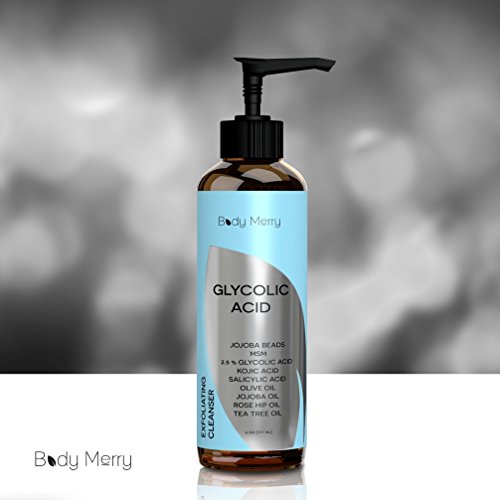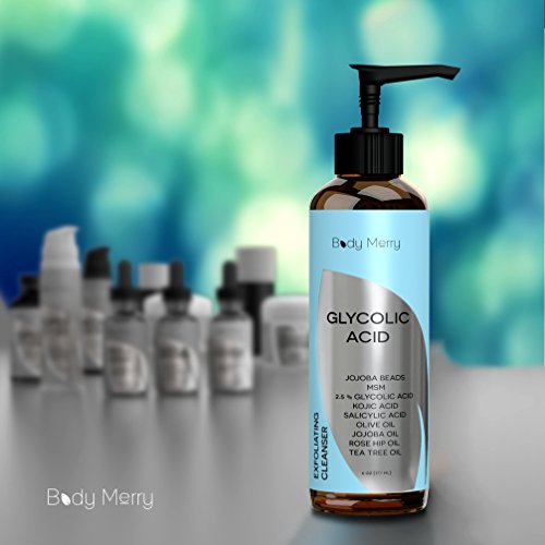 -. Title : Glycolic Acid Cleanser - Best Exfoliating Face Wash - 6 OZ - 2.5 % Glycolic Acid + Salicylic Acid + Kojic Acid + Jojoba Beads & Oil + MSM - Reduces Fine Lines & Wrinkles - By Body Merry