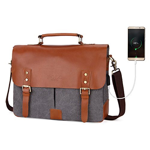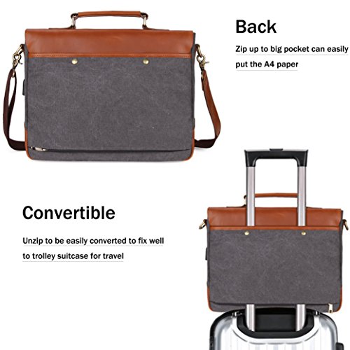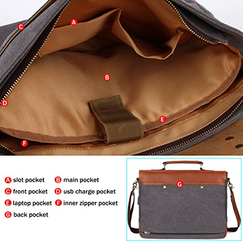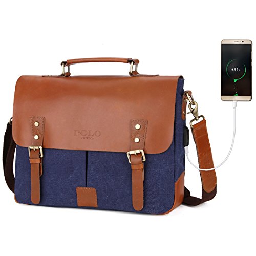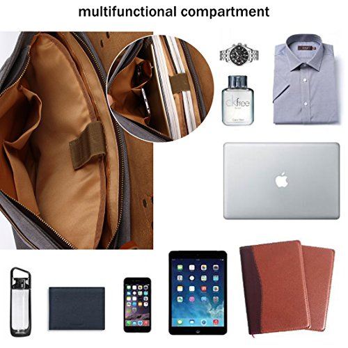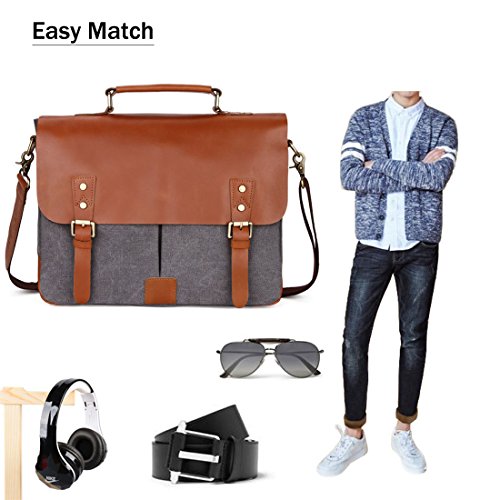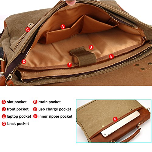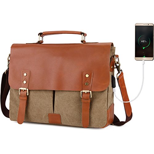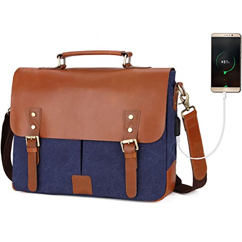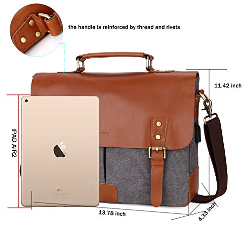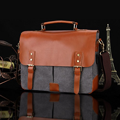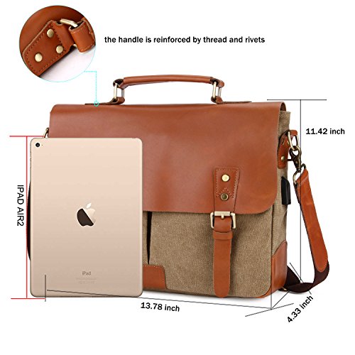 Genuine Leather Messenger Satchel Bag For Men 14" Canvas Laptop Bag Briefcase