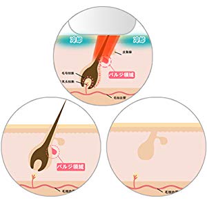 - 一般的なレーザー脱毛は毛根を熱で破壊するため、照射時に強い痛みを伴います。また、DEESSは毛根よりも浅い位置にある発毛因子を蓄熱で破壊して、ロングパルス(100/1000ms)を採用するから、治療期間の痛みがほとんどありません。
