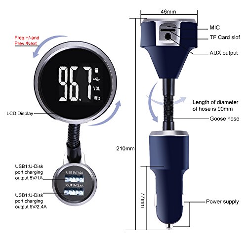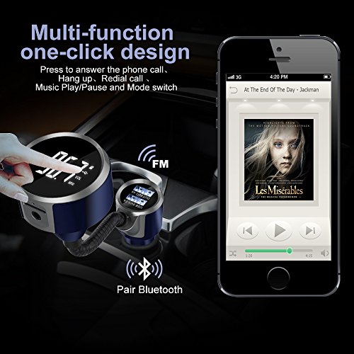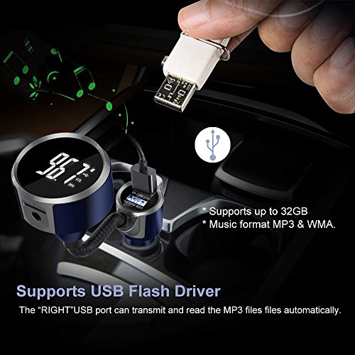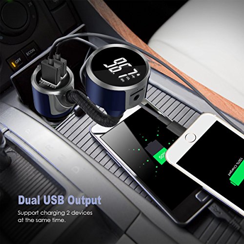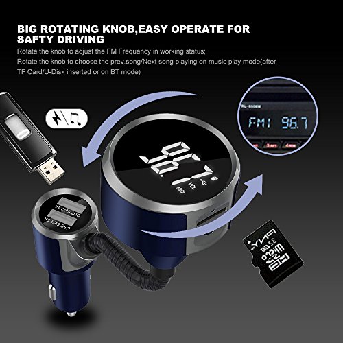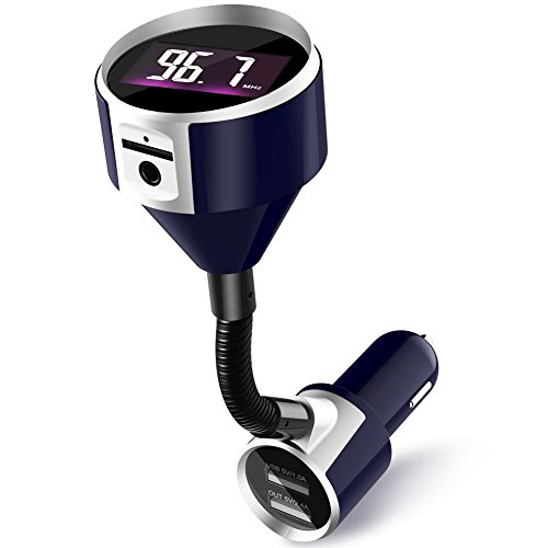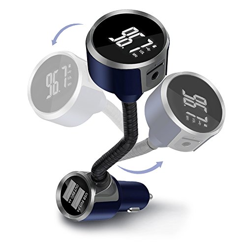 FM Transmitter, Tohayie Bluetooth Wireless Radio Adapter Audio Receiver Stereo Music Tuner Modulator Car Kit with Hands-free Calling & Dual USB Charger(Blue)
